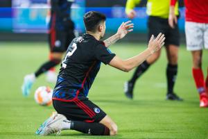 SpillerMohamed ElyounoussiGabriel PereiraSilkeborg - F.C. København - 06/10-2024 Player celebrations/greetings Tobias Kongsvang