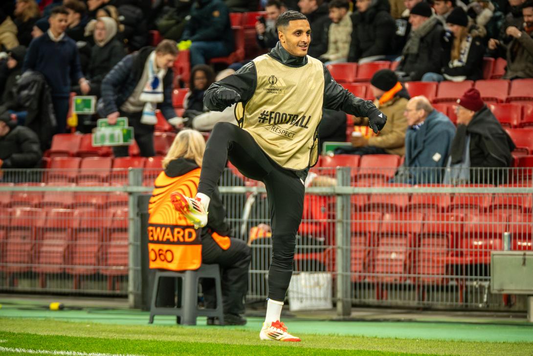 SpillerElias AchouriF.C. København - Bayer 04 Leverkusen - 18/09-2025 Players at work Tobias Kongsvang
