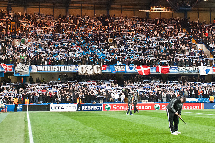 Fotos af Stemning og kamp fra Udekamp den 16. marts 2011 i UEFA Champions League mod Chelsea FC på Stamford Bridge foran 36.454 tilskuere